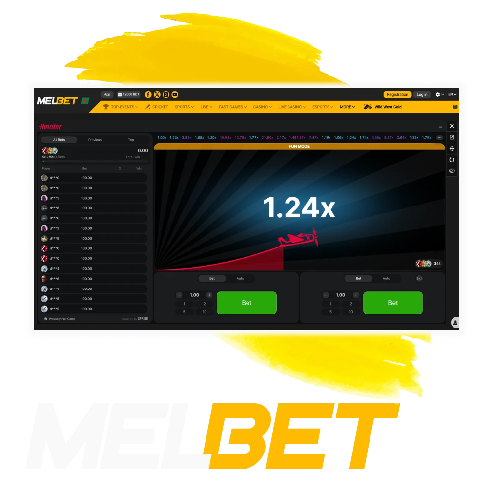 Aviator is among the top ten most-played online casino games in the world. Players at Melbet platform in Bangladesh can enjoy it as well on our online casino. All you need to do is register a Melbet account now and start playing.