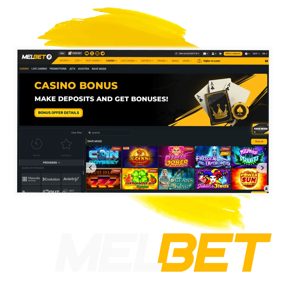 Slots make up the largest part of the Melbet Casino catalogue. You can choose from nostalgic, classic fruit-themed slots, traditional 3-reel fruit machines, Megaways, jackpot games, or video slots with bonus rounds.