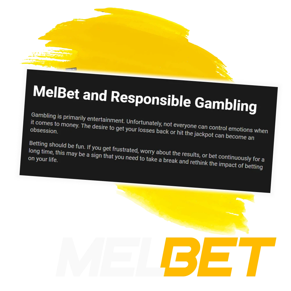 Responsible gambling is one of the key principles that Melbet Bangladesh follows. We strive to provide a safe and fair environment that aims to reduce the potential negative effects of risky gaming among users. Maintaining responsible principles helps to ensure that gambling is just a form of entertainment and not a way to make money.