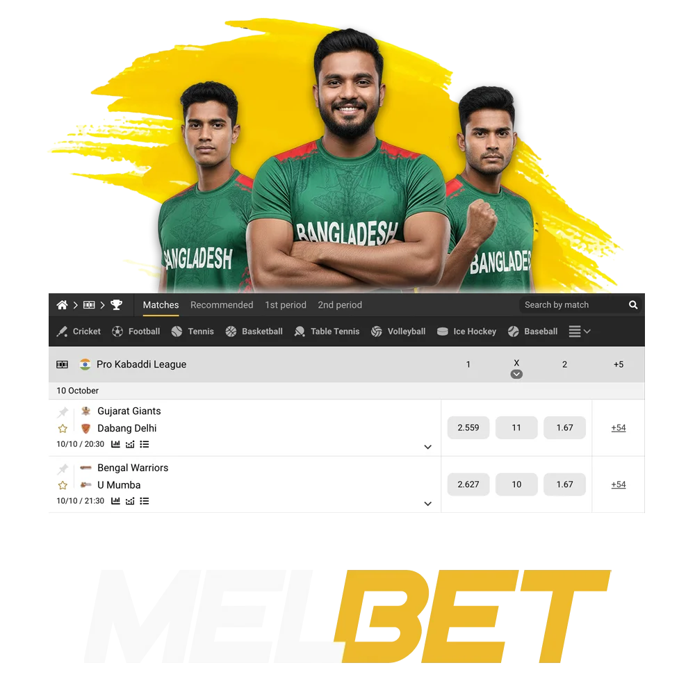 Explore the Melbet kabaddi Bangladesh section to find competitive odds for every major tournament.